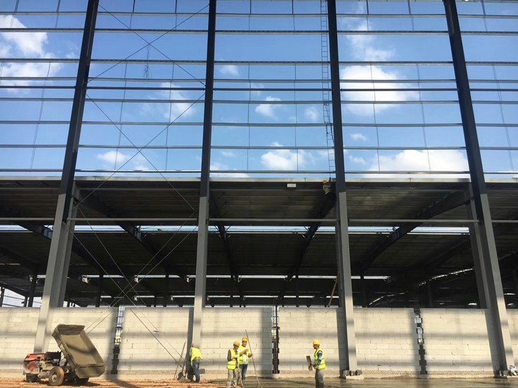 上圖為:工廠鋼結構廠房施工圖片