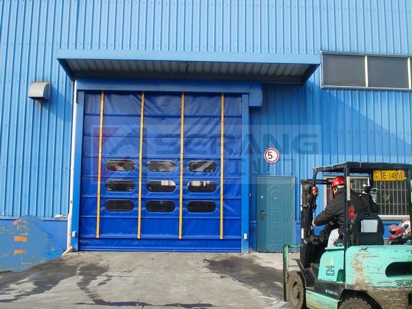 簾布:快速門專用高密度工業基布,厚度為0.8-1.2mm,防火級別達到歐洲NF-P92-503標準,黃色、藍色、白色或全透明等多種顏色可供選擇