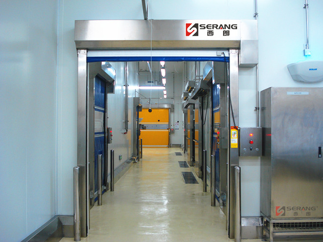 USU304不銹鋼快速門用于披薩食品制造工廠內高潔凈車間。